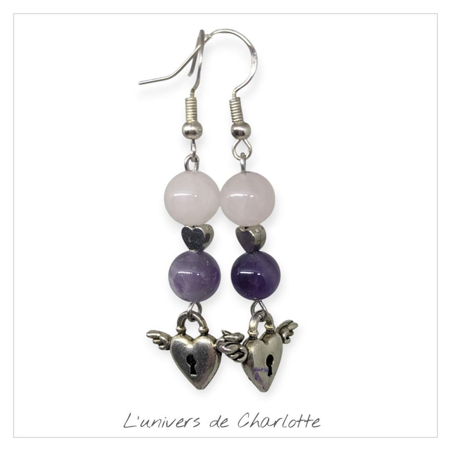 Boucles d'oreilles "Améthyste/Quartz rose" BO-017
