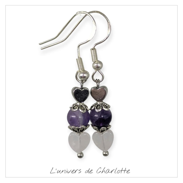 Boucles d'oreilles "Améthyste/Quartz rose" BO-025