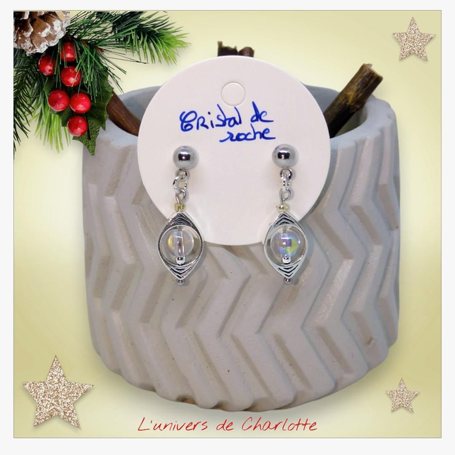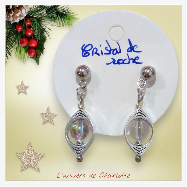 Boucles d'oreilles "Cristal de roche" argentée BO-202