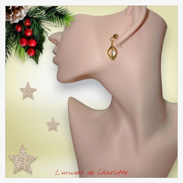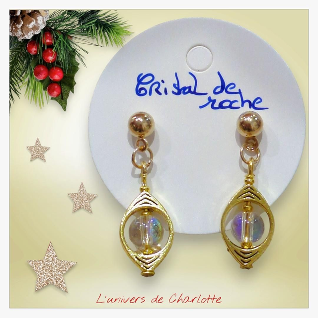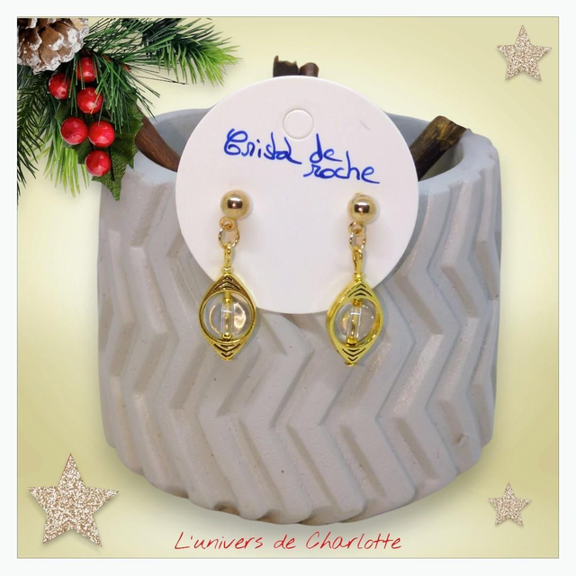 Boucles d'oreilles "Cristal de roche" dorée BO-203