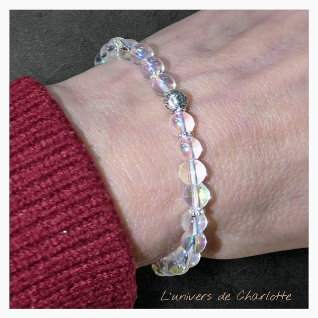Bracelet "Cristal de roche aqua aura" 6mm BR-250