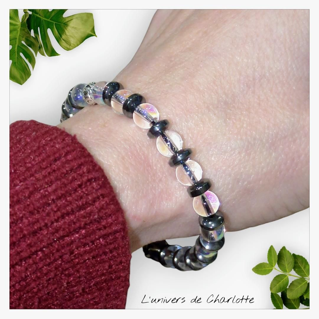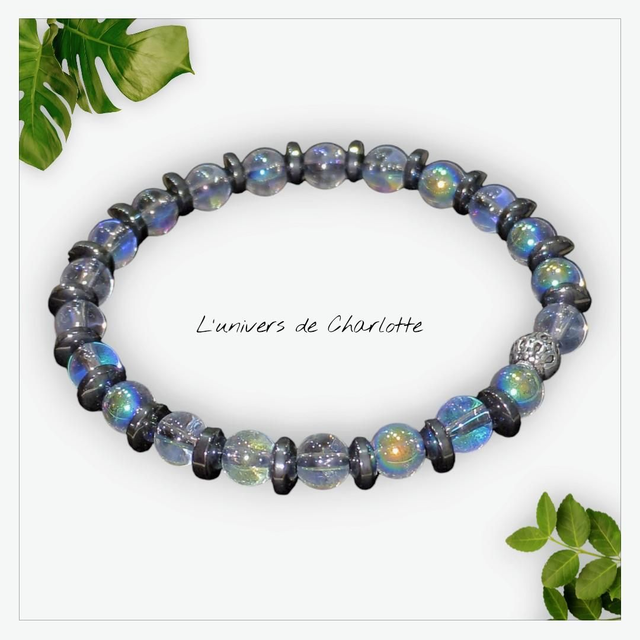 Bracelet "Cristal de roche aura & Hématite" 6mm BR-310