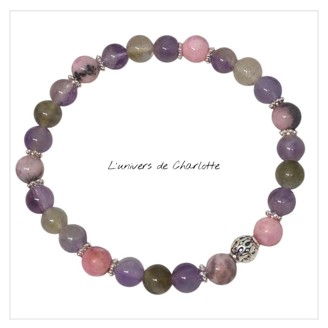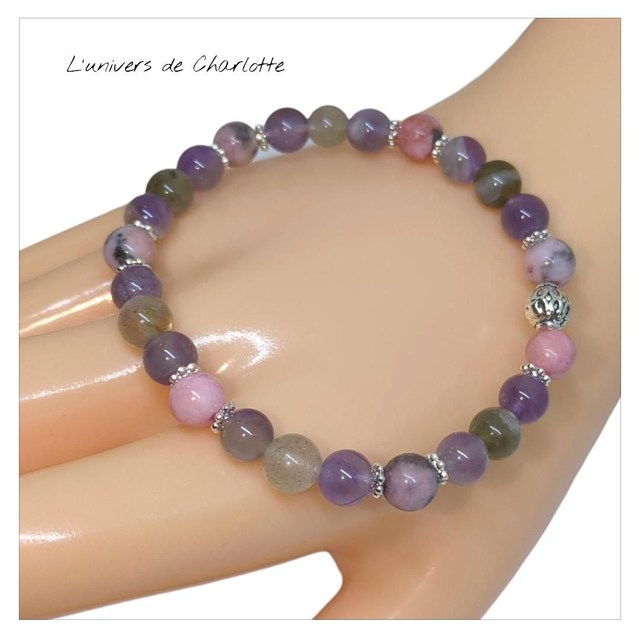 Bracelet Trinité : Jaspe rose, Améthyste, Labradorite