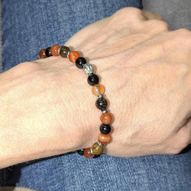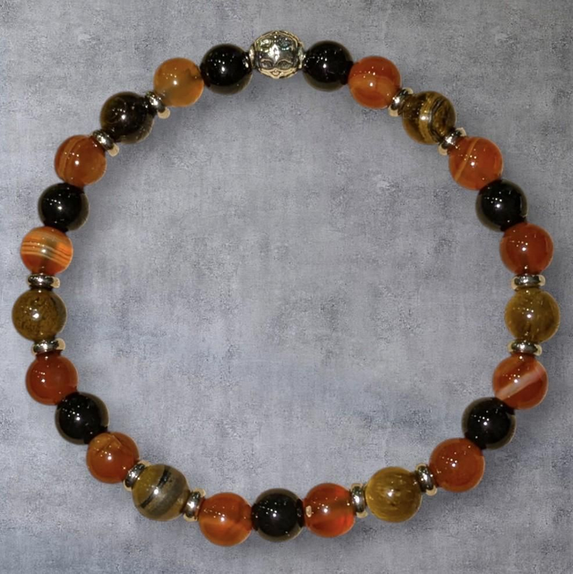 Bracelet Trinité : Oeil de tigre, Cornaline, Obsidienne