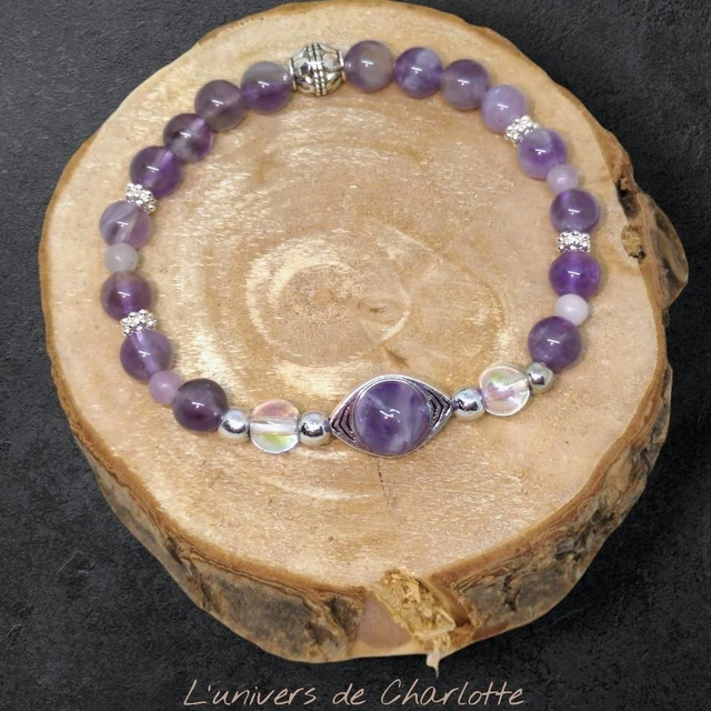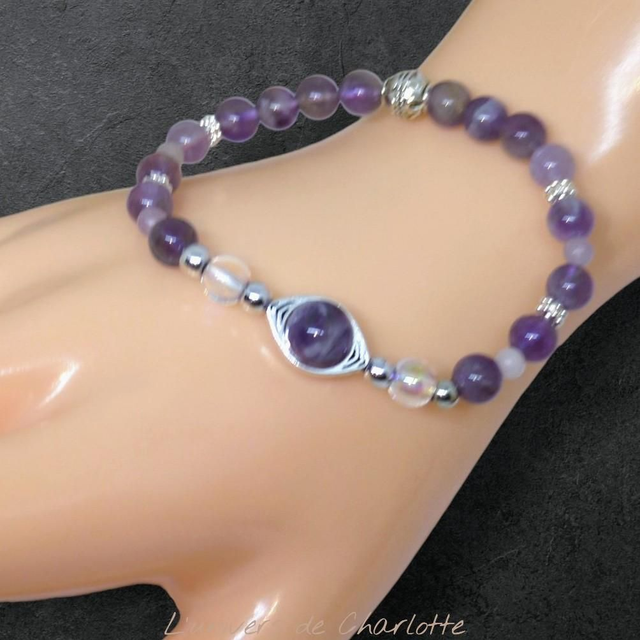 Bracelet collection "Glam" Améthyste + Cristal de roche aqua aura