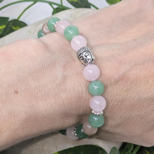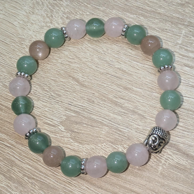 Bracelet Trinité : Aventurine verte + Quartz rose + Pierre de soleil