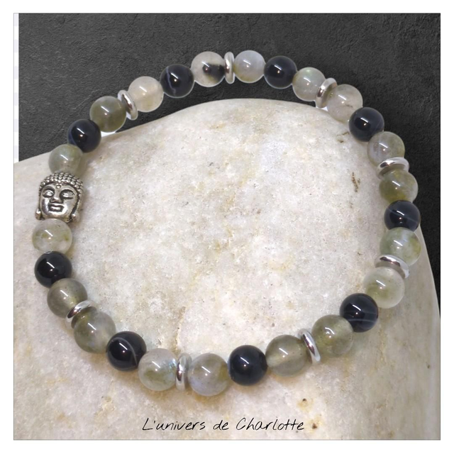 Bracelet Labradorite + Onyx