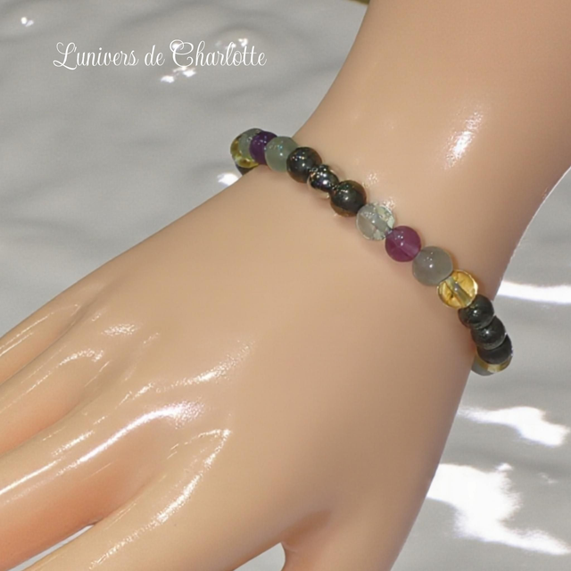 Bracelet "Mémoire & Concentration" - Pyrite, citrine*, fluorite - REF16