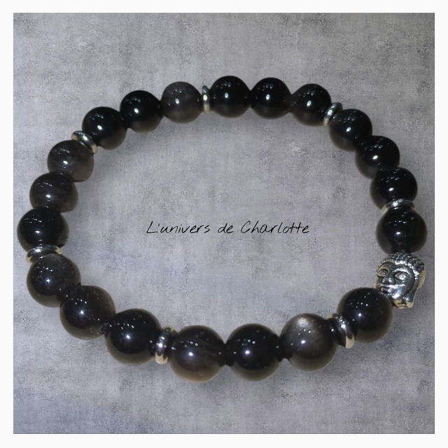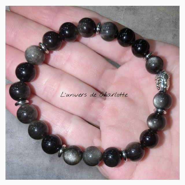 Bracelet "Obsidienne argentée" 8mm BR-405