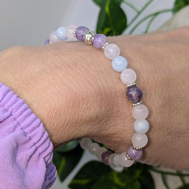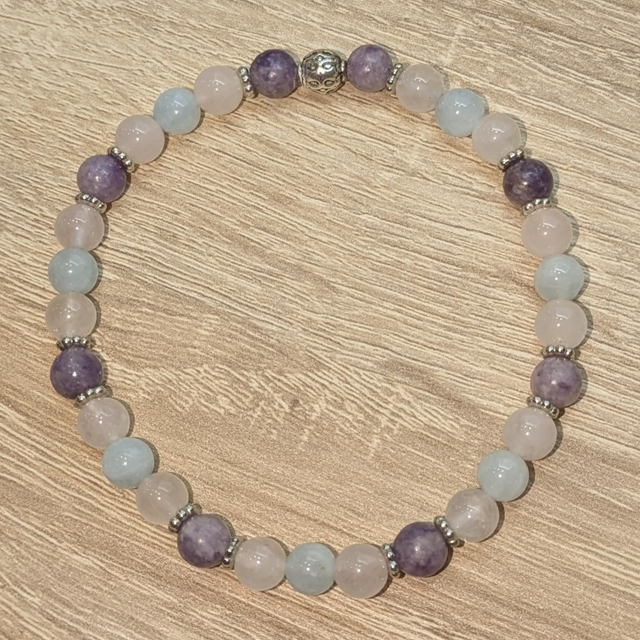 Bracelet Trinité : Aigue-marine, Lépidolite, Quartz rose