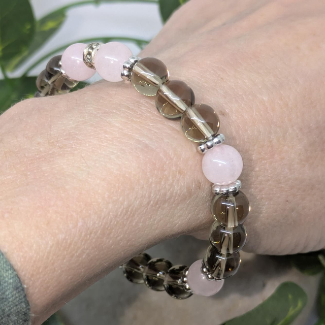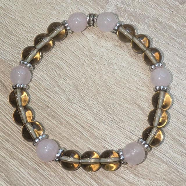 Bracelet "Quartz fumé & Quartz rose" 8mm BR-035