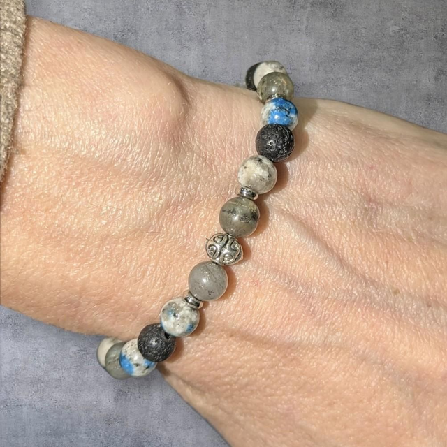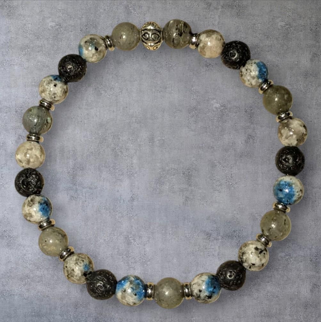 Bracelet Trinité : Jaspe K2 + Labradorite + Pierre de lave