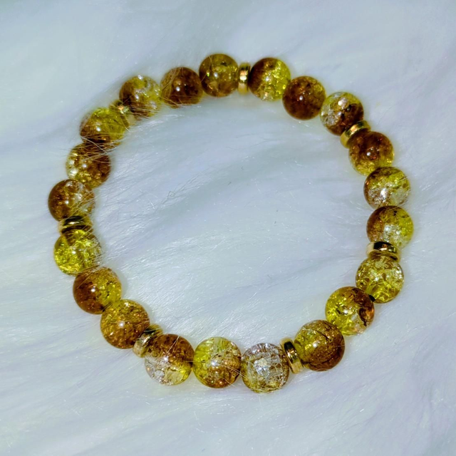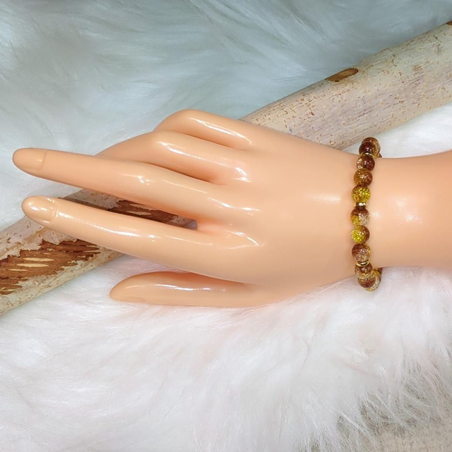 Ce bracelet en perles de résine givrée évoque une douce alchimie entre lumière et matière. Chaque perle, ronde et délicatement translucide, semble emprisonner des éclats de verre et de couleur, comme un jardin secret figé dans le cristal. Les nuances de couleurs et de transparent scintillant s’entrelacent harmonieusement, créant un jeu de reflets subtil, tantôt lumineux, tantôt feutré.