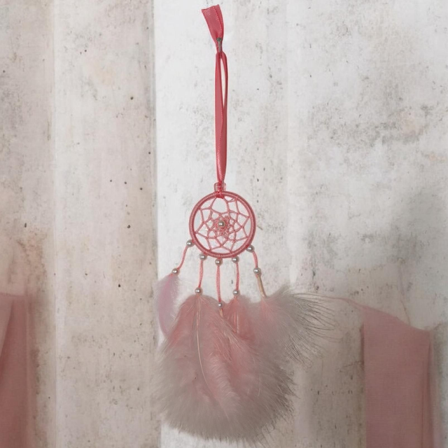 Sous la délicatesse de ses plumes et la danse de ses fils tissés, cet attrape-rêve garde les songes comme un gardien bienveillant.
