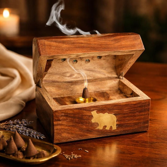 Boîte pour cône d’encens – Bois & éléphants d’Inde