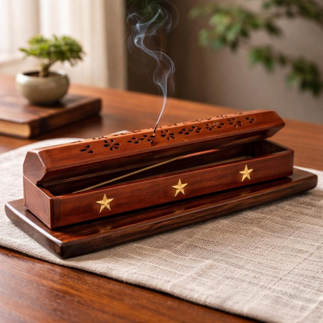 "Étoiles" - Boîte pour tiges et cônes d'encens - Bois