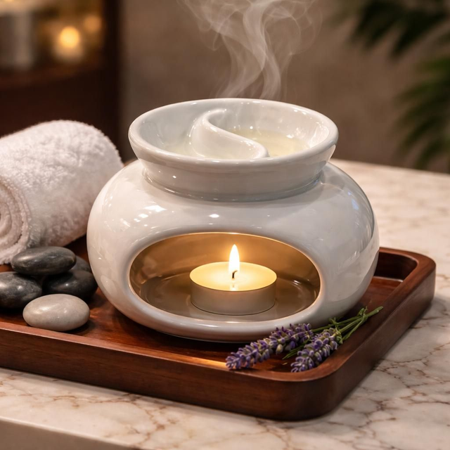 Parfumez votre intérieur avec un doux parfum naturel et apaisant. Allumez une bougie type chauffe-plat et versez quelques gouttes d'huiles parfumées dans la soucoupe.