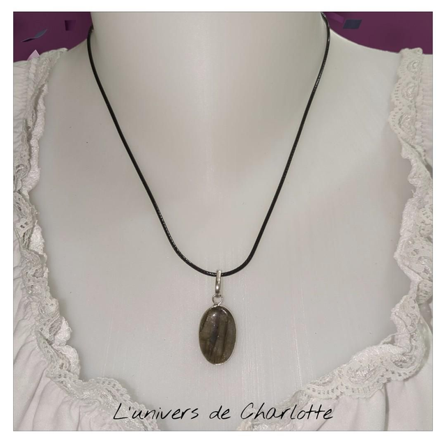 "Labradorite" - Pendentif serti sur cordon - PN-138
