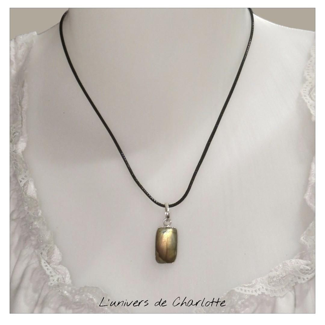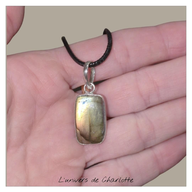 "Labradorite" - Pendentif serti sur cordon - PN-140