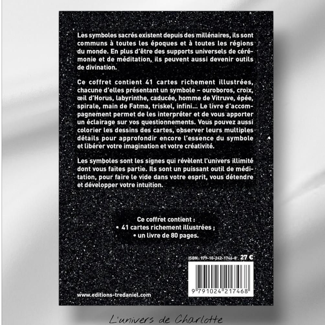 Ce coffret contient 41 cartes illustrées, chacune d'elles présentant un symbole. Le livre d'accompagnement permet de les interpréter et de vous apporter un éclairage sur vos questionnements. Vous pouvez aussi colorier les dessins des cartes, observer leurs multiples détails pour approfondir encore l'essence du symbole et libérer votre imagination et votre créativité.