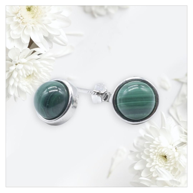 "Malachite" - Boucles d'oreilles argent 925 ronde