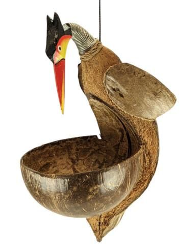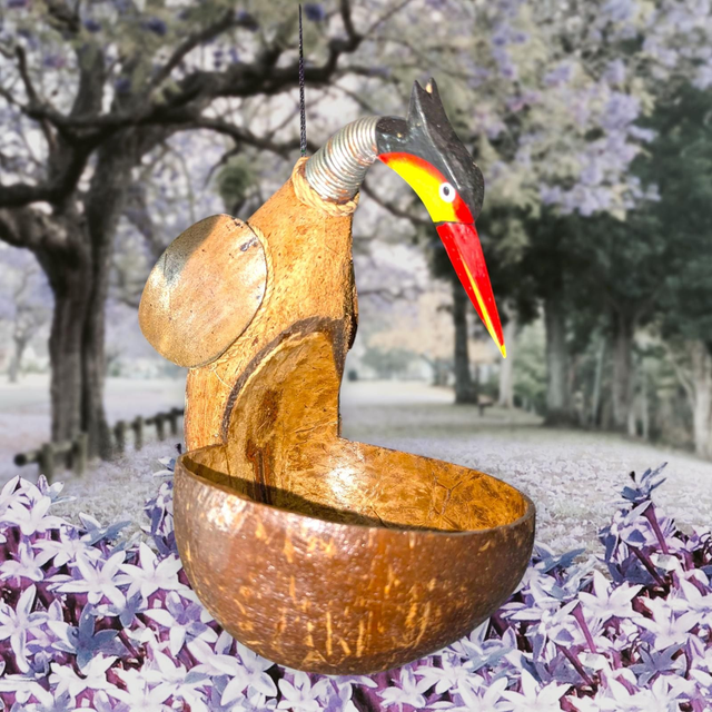 Invitez la nature à votre porte avec cette mangeoire artisanale en noix de coco, faite main avec des matériaux naturels. Elle offre aux mésanges et rouge-gorges un joli repère pour se nourrir, tout en décorant votre jardin d’une touche exotique et chaleureuse.