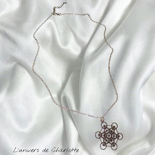 Le Cube de Métatron est un puissant symbole de géométrie sacrée, issu de la Fleur de Vie. Il renferme les 5 solides de Platon, représentant les éléments fondamentaux : terre, eau, feu, air et éther.