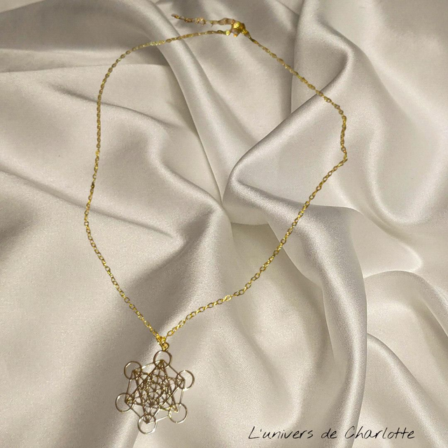 Le Cube de Métatron est un puissant symbole de géométrie sacrée, issu de la Fleur de Vie. Il renferme les 5 solides de Platon, représentant les éléments fondamentaux : terre, eau, feu, air et éther.