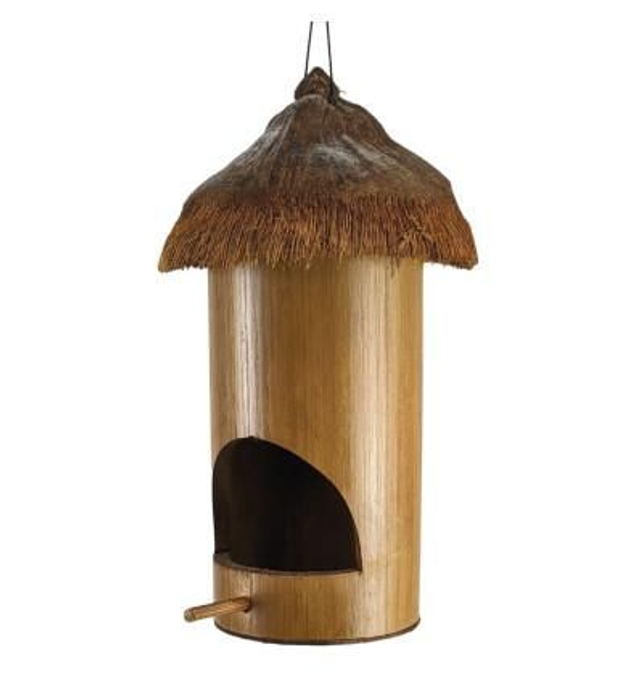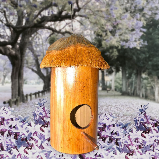 Offrez un doux refuge à vos petits oiseaux avec ce nichoir fait main en bambou et noix de coco. Inspiré des cabanes tropicales, il ajoute une touche zen et exotique à votre jardin ou balcon.