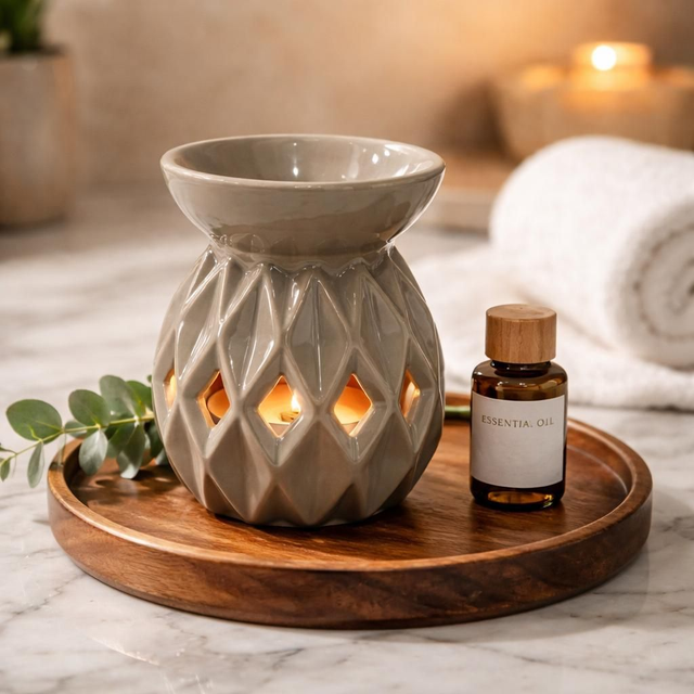 "Origami gris" -Brûleur huile & Fondant - Céramique