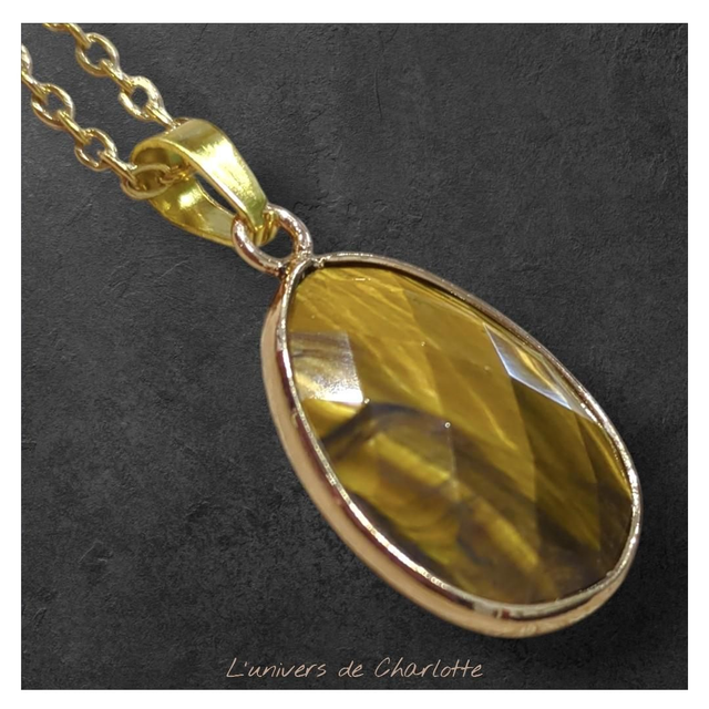 Pendentif "Oeil de tigre" sur chaîne PN-504