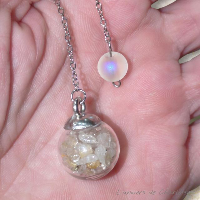 "Quartz rutile doré" - Pendule bulle de verre argentée - P-21