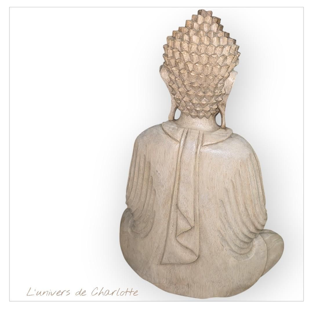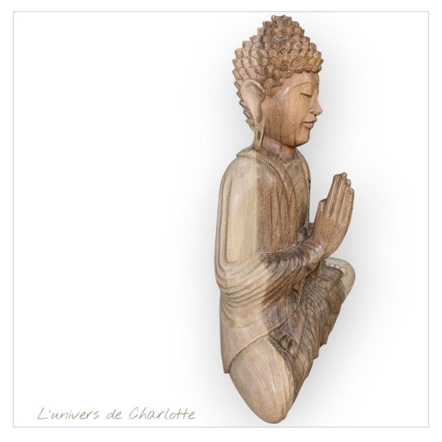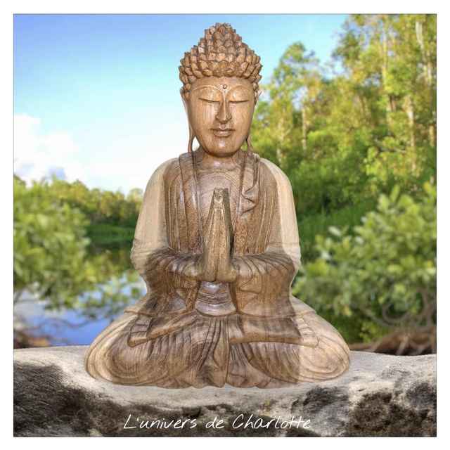 Statue "Bouddha lotus" 40 cm en bois sculptée à la main