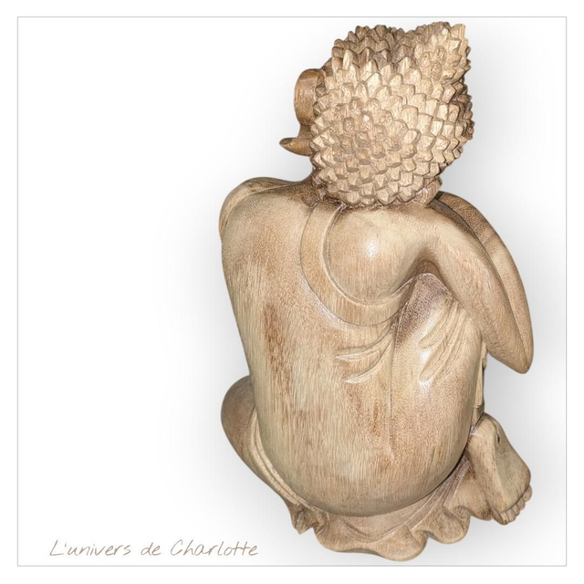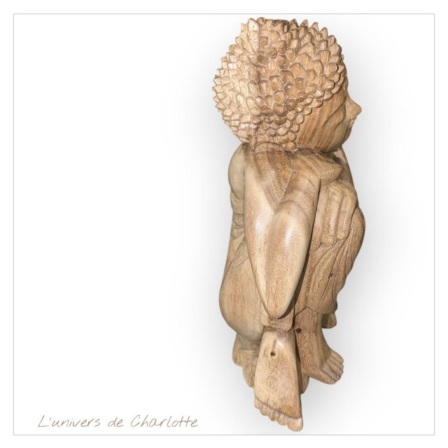 Statue "Bouddha Penseur" 30 cm en bois sculpté à la main