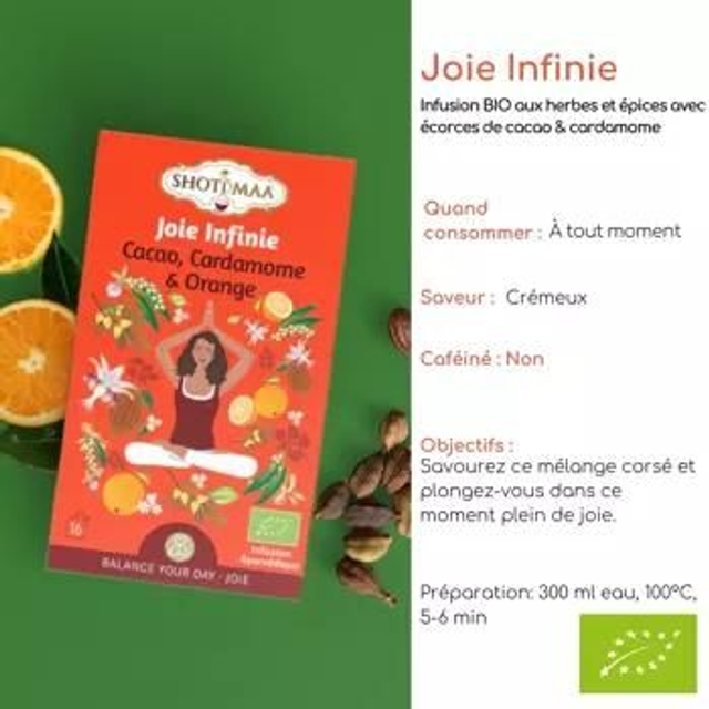 Tisane bio "Joie infinie" Cacao, Cardamome, Orange